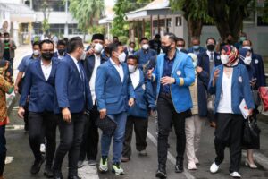 Surabaya, Jawa Timur: Sudah satu semester ini Agus Harimurti Yudhoyono (AHY) menempuh pendidikan di Program Doktor Pengembangan Sumber Daya Manusia (PSDM) Sekolah Pascasarjana Universitas Airlangga (Unair). Namun selama pandemi Covid-19, perkuliahan dilaksanakan secara daring. Saat melakukan kunjungan kerja ke Surabaya, AHY sengaja menyempatkan berkunjung ke Unair, Senin (21/2) bertemu dosen dan teman-teman sekelasnya yang selama ini bertemu secara online.