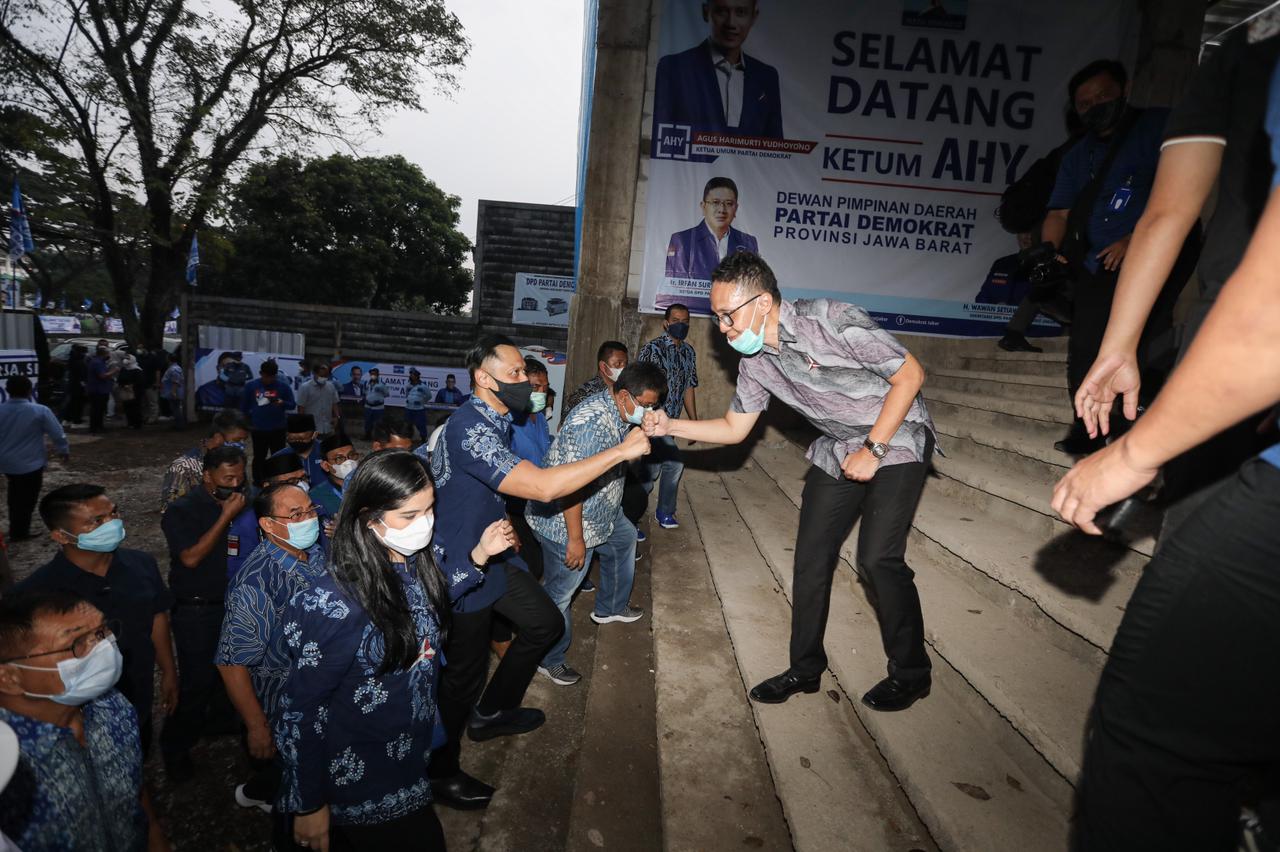 Mendampingi Ketum AHY saat peninjauan diantaranya, Bendahara Umum Partai Demokrat Renville Antonio, Wasekjen Partai Demokrat Agust Jovan Latuconsina, Ketua Fraksi Partai Demokrat DPRD Jawa Barat Asep Wahyuwijaya, dan Sekretaris DPD PD Partai Demokrat Jawa Barat Wawan Setiawan berserta jajarannya.