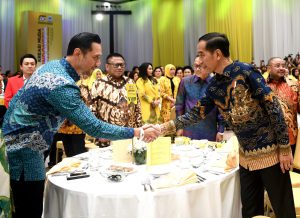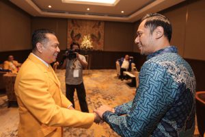 “Selamat malam semua,” sapa AHY kepada para petinggi dan kader yang memenuhi ruangan Golden Ballroom tersebut. Dalam suasana yang hangat, AHY turut menyapa dan menyalami Presiden RI Joko Widodo, Wakil Presiden RI K.H. Ma’ruf Amin, Wakil Presiden RI ke-10 dan 12 Jusuf Kalla dan Ketua Umum Partai Golkar Airlangga Hartarto selaku tuan rumah acara.