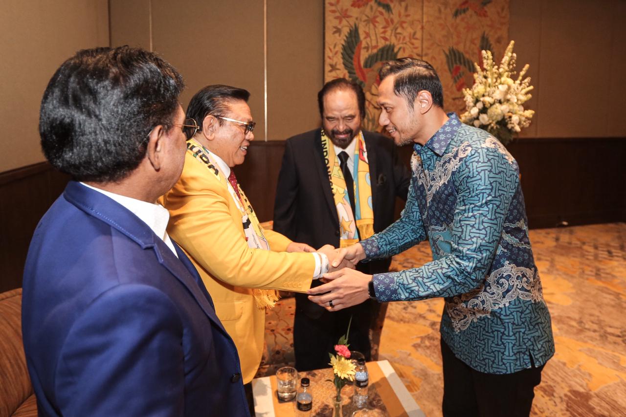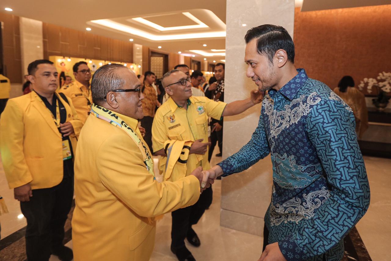 “Selamat malam semua,” sapa AHY kepada para petinggi dan kader yang memenuhi ruangan Golden Ballroom tersebut. Dalam suasana yang hangat, AHY turut menyapa dan menyalami Presiden RI Joko Widodo, Wakil Presiden RI K.H. Ma’ruf Amin, Wakil Presiden RI ke-10 dan 12 Jusuf Kalla dan Ketua Umum Partai Golkar Airlangga Hartarto selaku tuan rumah acara.