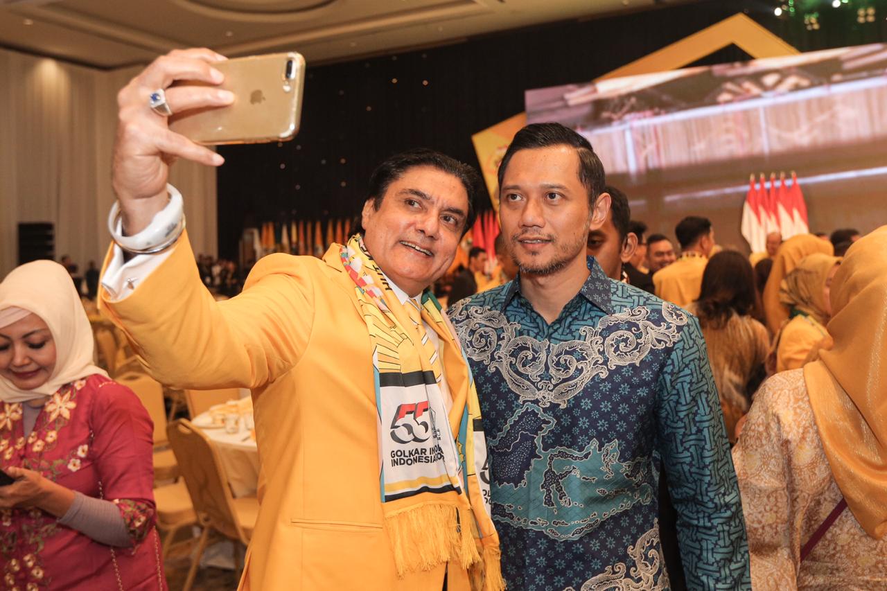 Jakarta: Wakil Ketua Umum Partai Demokrat Agus Harimurti Yudhoyono (AHY) menghadiri HUT ke-55 Partai Golkar di Golden Ballroom, Hotel Sultan, Jakarta Selatan, Rabu (6/11) malam. Acara itu mengambil tema “Kreasi Muda Indonesia”. AHY tiba sekitar pukul 19.00, mengenakan batik berwarna biru muda.