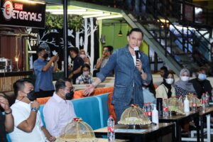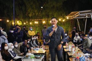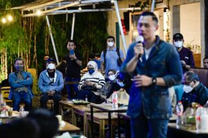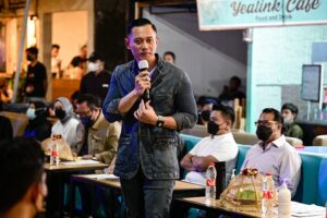 Makassar, Sulawesi Selatan: Dinginnya suasanya Cafe Hanggar yang baru diguyur hujan berubah menjadi hangat. “Wah luar biasa, Makassar pecah. Generasi mudanya sangat energik, dinamis, kreatif, dan menyenangkan sekali suasanya,” puji Agus Harimurti Yudhoyono (AHY) semangat, Rabu (16/2) malam, saat bincang-bincang santai dengan anak-anak muda Makassar.