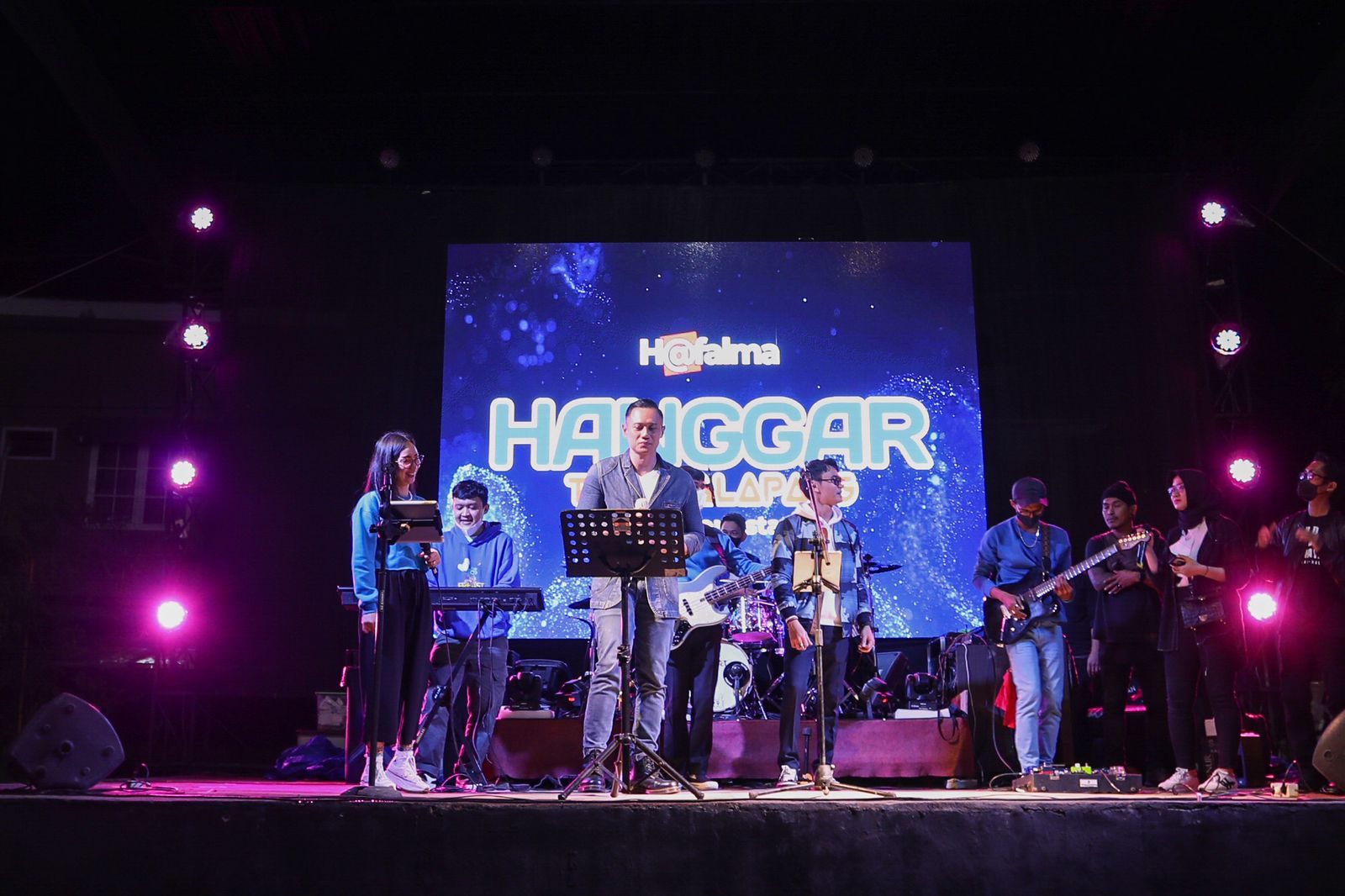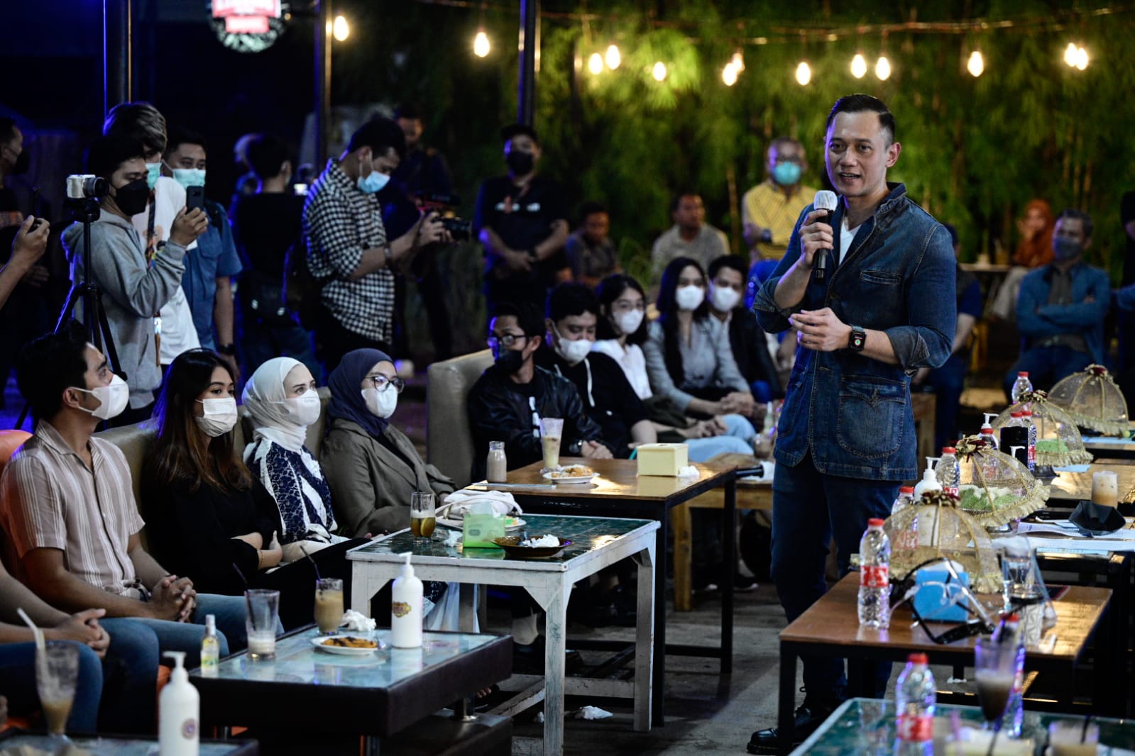 Keseruan acara malam itu makin bertambah ketika salah satu influencer Rijal System (29) menyampaikan arti nama dari Agus Harimurti Yudhoyono. “Izinkan saya mengartikan namanya ya Mas. Agus Harimurti Yudhoyono, di KTP masih sama kan Mas? Ku suka sekali namanya. Agus, anaknya gagah dan juga tulus. Harimurti artinya, hari-harinya untuk NKRI harga mati, luar biasa cocok ini. Nah ini nama yang paling terakhir Mas Ketum, Yudhoyono artinya, Yu doakan beliau jadi the next Soekarno,” lanjut Rijal disambut riuh tepuk tangan dari para pengunjung Cafe Hanggar.