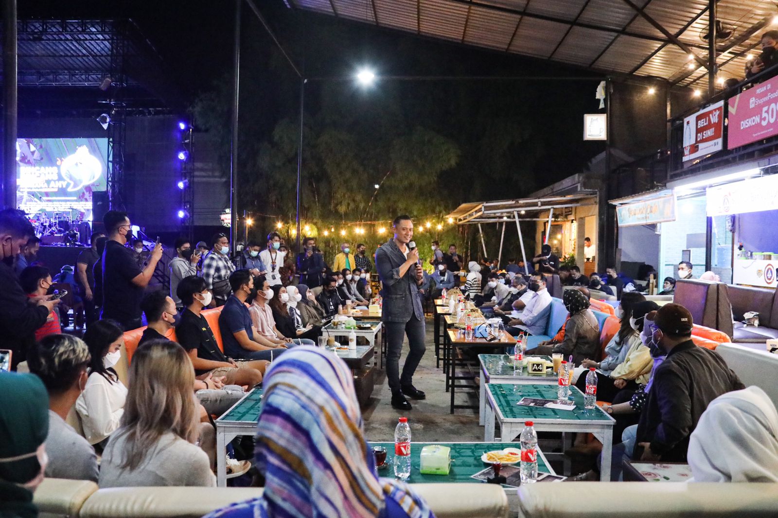 Makassar, Sulawesi Selatan: Dinginnya suasanya Cafe Hanggar yang baru diguyur hujan berubah menjadi hangat. “Wah luar biasa, Makassar pecah. Generasi mudanya sangat energik, dinamis, kreatif, dan menyenangkan sekali suasanya,” puji Agus Harimurti Yudhoyono (AHY) semangat, Rabu (16/2) malam, saat bincang-bincang santai dengan anak-anak muda Makassar.