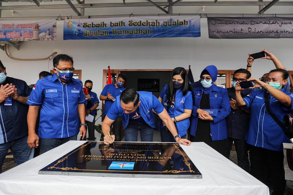 Cimahi: Mengawali kegiatan hari kedua rangkaian AHY Ngariung Jabar, Ketua Umum Partai Demokrat Agus Harimurti Yudhoyono (AHY) meresmikan Kantor DPC Partai Demokrat Kota Cimahi, Kamis (3/6) pagi. Kantor DPC Cimahi terletak di Jl. Sangkuriang Barat No. 4, Kelurahan Cipageran, Kecamatan Cimahi Utara, Kota Cimahi, Jawa Barat.