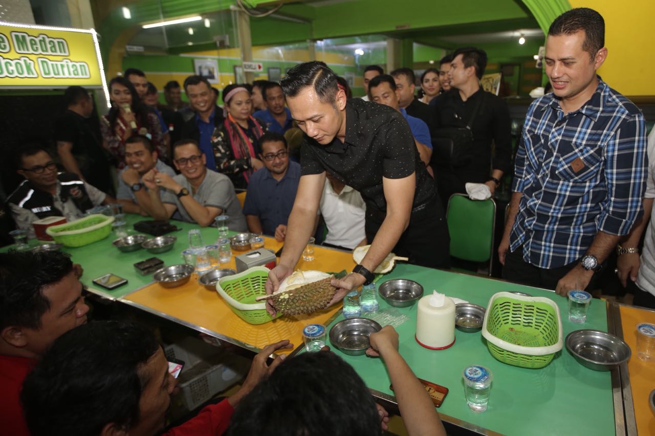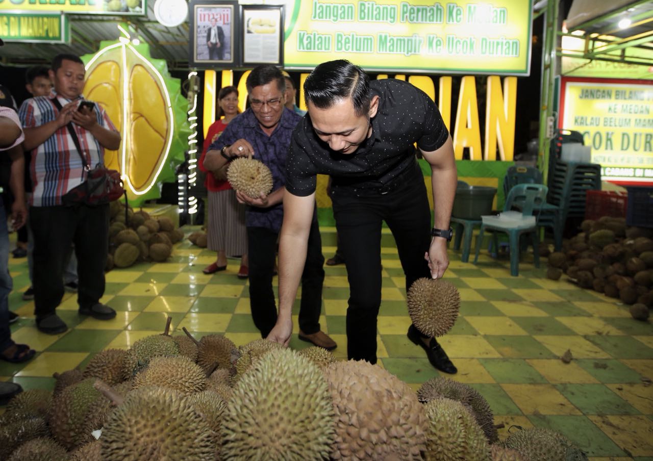 Suasana Ucok Durian saat AHY mencicipi durian dengan berbagai [...]