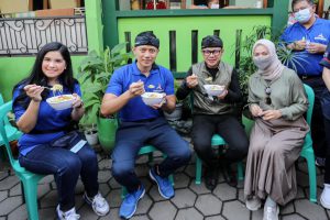 Menyusuri kampung yang didominasi dengan warna dan hiasan mural berwarna hijau yang melambangkan kebersihan dan keasrian, Ketum AHY dan istri Annisa Larasati Pohan juga menyempatkan mencicipi berbagai makanan khas dari Kampung Labirin. Ketum AHY dan Annisa mencoba Laksa khas Kampung Labirin dan Emping Jengkol yang juga merupakan olahan hasil produksi dari warga di sini.