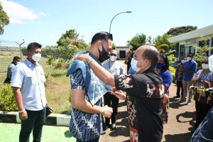 Setibanya di Kupang, Ketum AHY langsung menuju Kantor Gubernur NTT untuk silaturahmi dengan Gubernur Viktor Laiskodat. Sesampainya di sana, AHY diselempangkan kain khas Sumba NTT oleh Viktor.