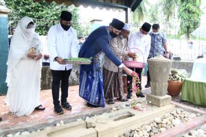 Selesai meninjau rumah adat, AHY melakukan ziarah ke Makan Tun Sri Lanang yang jaraknya sekitar 3 km dari rumah adat. Meskipun cuaca sedikit hujan, namun tidak mengurangj semangat AHY untuk berkegiatan.