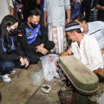 Setelah berkeliling ke tempat UMKM, Ketum AHY dan Annisa berjalan kaki di tengah guyuran hujan menuju tempat penggilingan padi Beras Pandan Wangi untuk bertemu dengan para petani di kawasan Guntur.