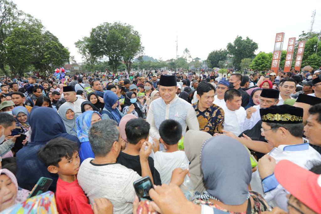 Tiba di Alun-alun Sumedang, AHY langsung menjadi pusat perhatian dan target masyarakat untuk foto bersama atau hanya sekedar menyapa.