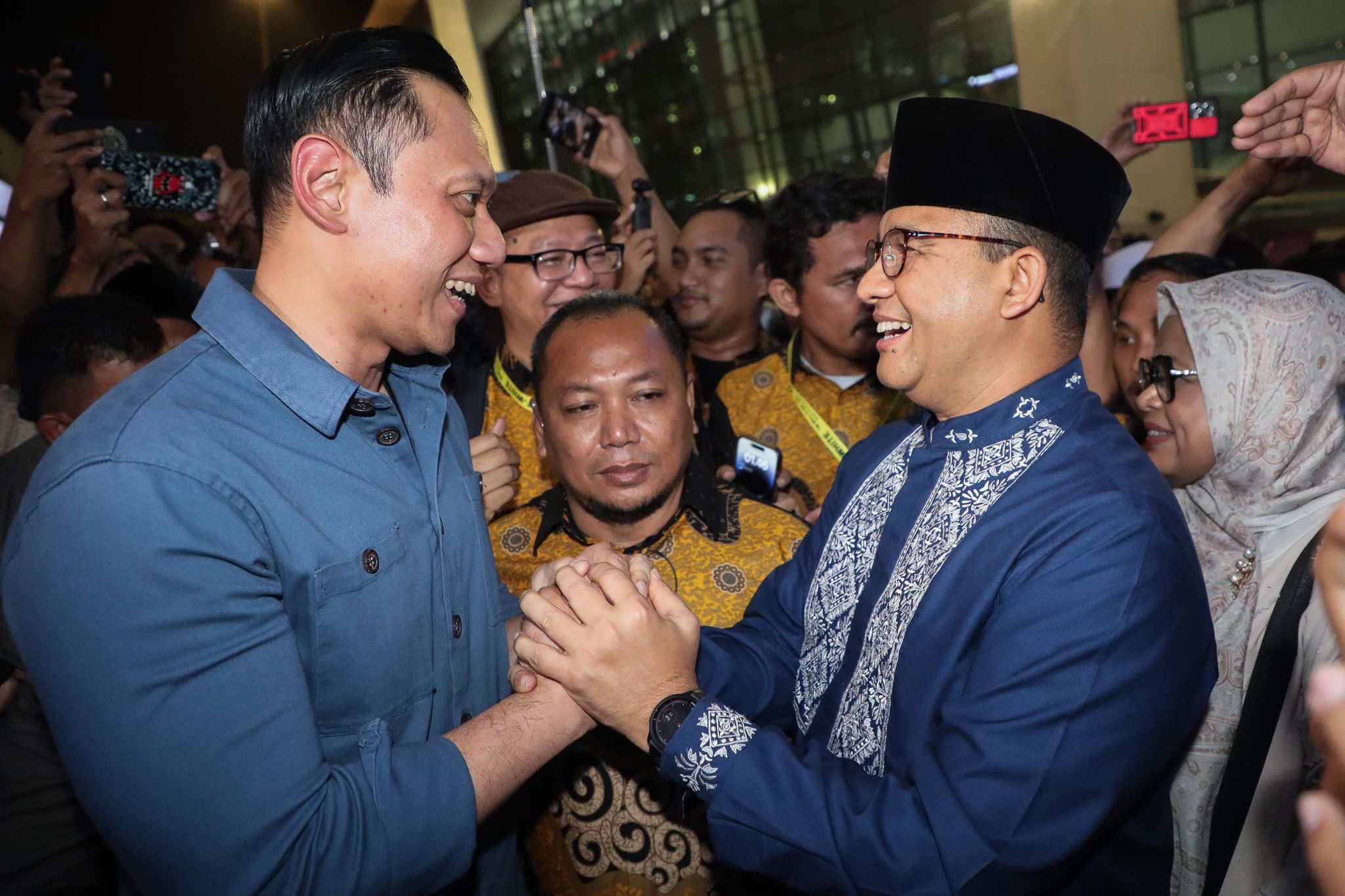 Keduanya berjalan bersama menyapa ratusan relawan yang hadir. “Ini adalah sebuah bentuk kebersamaan, saya bersama-sama cukup banyak relawan tadi menjemput Mas Anies, dan tadi saya dan Mas Anies menyapa mereka. Intinya adalah kita senang Mas Anies sudah kembali bersama-sama kita,” tutur AHY.