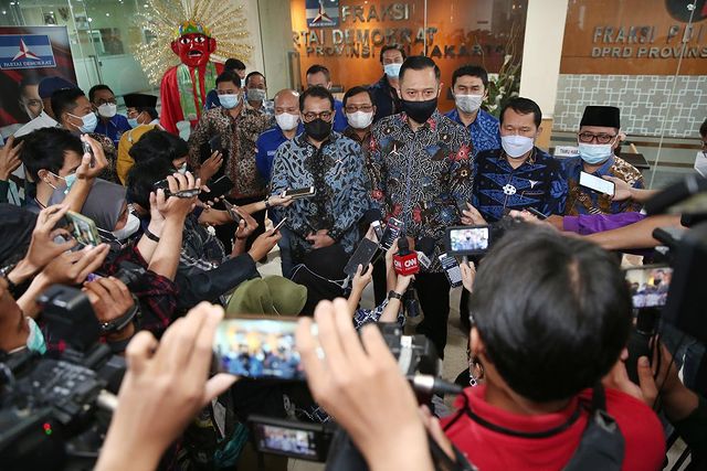 Jakarta: Ketua Umum Partai Demokrat Agus Harimurti Yudhoyono (AHY) mengunjungi Kantor Fraksi Partai Demokrat DPRD DKI di Jl. Kebon Sirih No.18, RT.11/RW.2, Gambir, Jakarta Pusat, Kamis (6/5) siang. “Senang hari ini bisa berkunjung secara langsung menyapa para kader utama Partai Demokrat yang saat ini berada di Fraksi Partai Demokrat DPRD DKI Jakarta,” tutur Ketum AHY kepada awak media usai pertemuan.