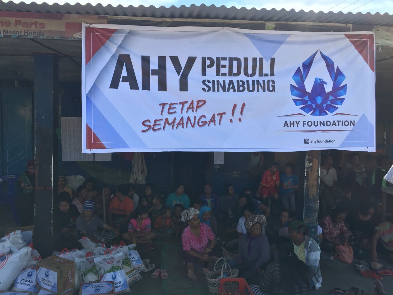 “Mas AHY yang juga mendengar tentang kabar para pengungsi Sinabung, mengutus perwakilan AHY Foundation untuk memberi bantuan. Saat ini AHY berada di Sumut, namun karena jadwal yang cukup padat di Medan, Deli Serdang, Langkat, serta Binjai, beliau tidak bisa hadir namun menitipkan salam hormat untuk warga yang sedang mengungsi di sini. Tetap semangat walaupun situasinya sulit, begitu pesan AHY,” Caosa menjelaskan.