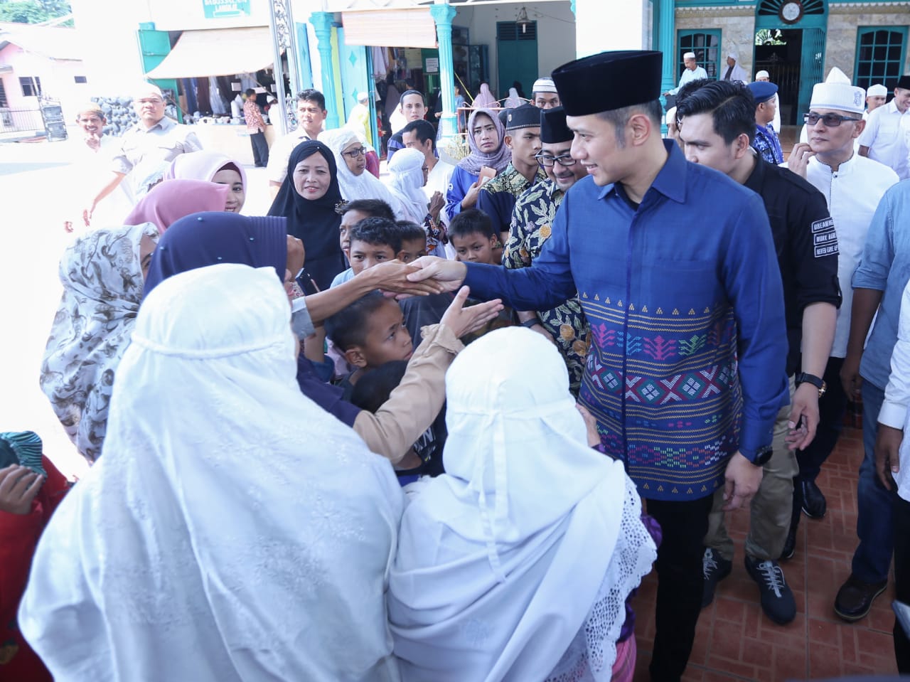 Langkat, Sumatera Utara: Agus Harimurti Yudhoyono (AHY) berkunjung ke Pusat Tarikat Naqsyabandiyah Persulukan Basilam, Kabupaten Langkat dan bersilaturahmi dengan tokoh agama terkemuka Tuan Guru Syekh H. Hasyim Al Syarwani (kerap dikenal dengan Tuan Guru Babussalam), Selasa (5/6) siang.