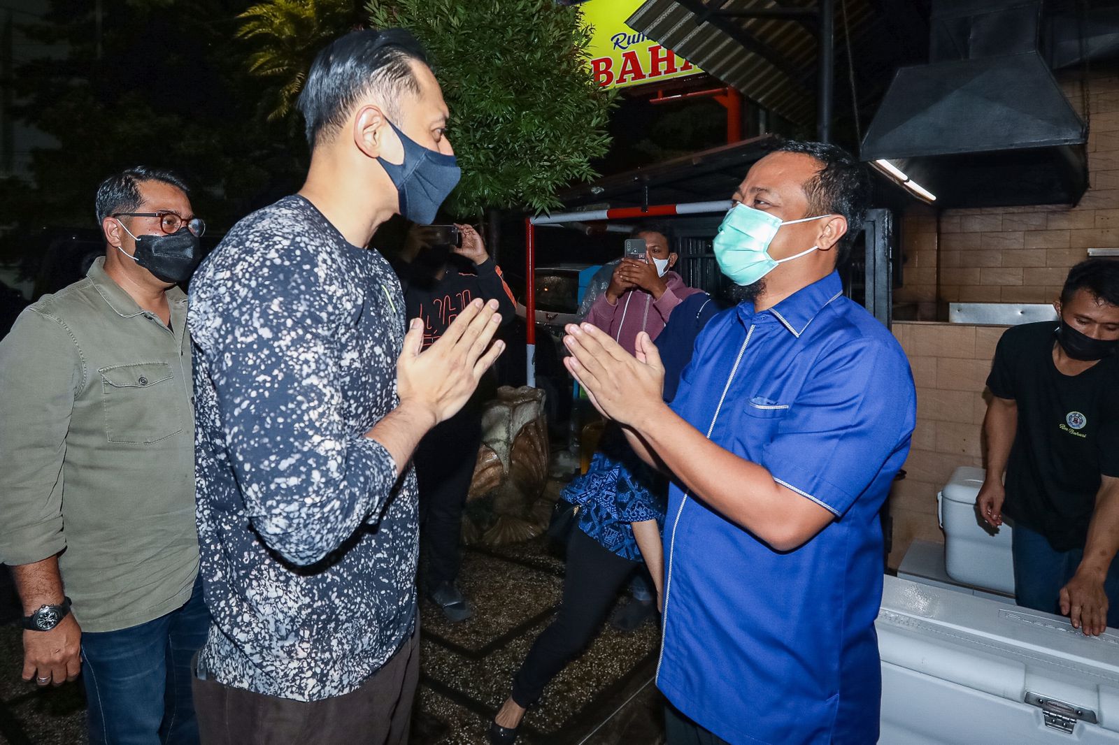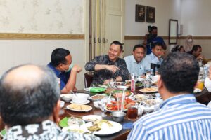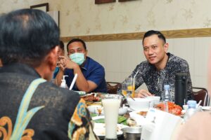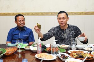 Makassar, Sulawesi Selatan: Setelah menempuh perjalanan udara lebih kurang dua jam dari Jakarta, Agus Harimurti Yudhoyono (AHY) kembali menginjakkan kakinya di Kota Makassar, Selasa (15/2) malam. AHY langsung diajak mencicipi kuliner khas bersama PLT Gubernur Sulawesi Selatan Andi Sudirman Sulaiman di Rumah Makan Bahari.