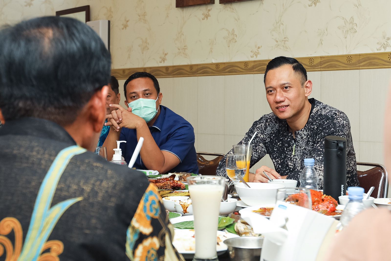AHY dipesankan berbagai macam makanan khas Sulawesi Selatan. “Luar biasa disuguhkan kuliner khas Makassar yang sangat beragam, didominasi oleh seafood. Saya sudah coba semua nih. Kepitingnya mantap, udangnya mantap, ikan kerapu, ikan baronang. Kemudian saya juga tadi coba cotto makassar, lalu konro, cumi, jadi semuanya nikmat sekali,”kata AHY penuh semangat.