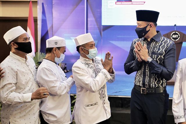 Palu, Sulawesi Tengah: “Kami tentu ingin lebih dekat lagi dengan para alim ulama. Karena sesuai dengan apa yang senantiasa Bapak kita semua, yaitu Bapak Susilo Bambang Yudhoyono katakan bahwa ulama dan umarah harus bersatu, harus dekat tidak boleh ada jarak, bukan hanya dekat secara emosional, secara psikologis, tapi juga dalam gagasan dan pemikiran,” tutur Ketua Umum Partai Demokrat Agus Harimurti Yudhoyono (AHY) dalam acara Silaturahmi Ulama, Temu Kader, Media Gathering, dan Buka Puasa Bersama yang diadakan di Ballroom Hotel Santika Palu, Senin (26/4) sore.