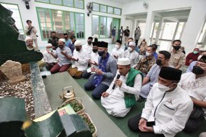 Usai menerima sambutan hangat di Bandara, Ketum AHY bersama Sekretaris Jenderal Partai Demokrat Teuku Riefky Harsya, Ketua DPD Sulawesi Tengah Anwar Hafid, Sekretaris DPD Sulawesi Tengah Jumriani Hamla, Ketua DPC Kota Palu Moh. Hidayat Pakamundi dan Ketua Fraksi DPRD Kota Palu Abdurahim Nasar Al-Amry, langsung menuju makam Habib Sayyid Idrus bin Salim al-Jufri atau Guru Tua untuk berziarah. Dipimpin langsung oleh Habib Hasan Idrus Al-Habsyi yang merupakan keturunan ketiga dari Guru Tua, Ketum AHY dengan khusyuk melantunkan doa, tahlil dan diakhiri dengan tabur bunga di area makam.